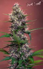 Die feminisierte Dark Devil von Sweet Seeds ist eine beeindruckende und wunderschöne farbige Sorte. Eine spezielle selbstblühende Sorte mit lila Blüten, von Buddha Seeds wurde mit der Big Devil XL gekreuzt. Das Ergebnis war diese hochpotente dunkle Sorte mit gigantischen Erträgen. Die Pflanzen entwickeln einen dicken kräftigen Hauptstamm und viele starke seitliche Äste. Die Äste der Pflanze befüllen sich dick mit Blüten und gleichzeitig bildet sich ein mächtiger Headbud. Die in Harz getränkten Blüten haben einen himmlisch fruchtigen Geruch mit einem Hauch von Weihrauch und Zitrone. Der Geschmack ist süß und fruchtig. Diese Sorte produziert enorm viel Harz in den Blüten und kleinen Blättern.